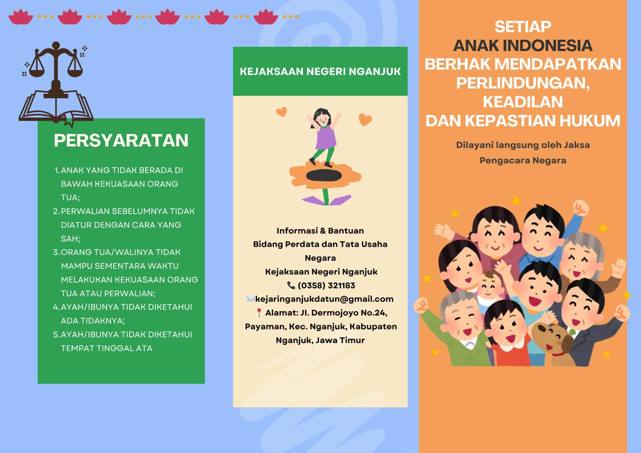 Melalui layanan Perwalian Anak, Kejaksaan Negeri Nganjuk hadir memberikan pendampingan hukum secara gratis, profesional, dan humanis bagi anak-anak yang membutuhkan penetapan wali berdasarkan ketentuan peraturan perundang-undangan.